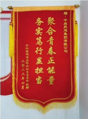 “聚合青春正能量,務(wù)實(shí)篤行顯擔(dān)當(dāng)”,近日青島市市北區(qū)合肥路街道夾嶺溝社區(qū)王濤書(shū)記將這樣一面錦旗送到了中啟膠建集團(tuán)青島公司,感謝公司在核酸檢測(cè)工作中的辛苦付出。這不僅是對(duì)青島公司防疫志愿工作的感謝與肯定,更是一種鼓勵(lì)與鞭策。
