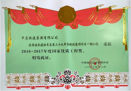 國(guó)家優(yōu)質(zhì)工程獎(jiǎng)是我國(guó)工程建設(shè)領(lǐng)域規(guī)格最高,跨行業(yè)、跨專業(yè)的國(guó)家級(jí)質(zhì)量獎(jiǎng)。此次獲獎(jiǎng)是集團(tuán)繼獲得省優(yōu)質(zhì)結(jié)構(gòu)、泰山杯、華東杯、青島杯、國(guó)家裝飾獎(jiǎng)之后又獲得的一項(xiàng)榮譽(yù)。