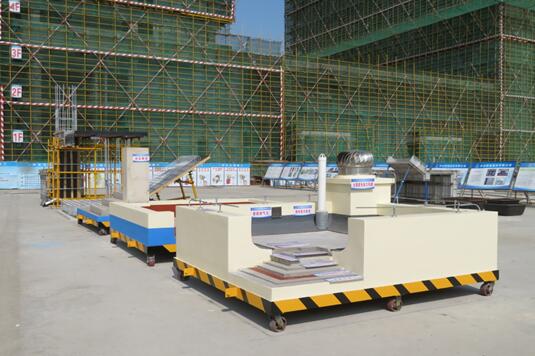 安全文明施工方面:宿舍安裝煙感報警器、施工現(xiàn)場安全體驗區(qū)、施工現(xiàn)場護欄、消防器材配備及定型化設施利用,樓內(nèi)臨時消火栓、管網(wǎng)設置;定型化配電箱防護棚;施工機具亮點展示、高大模板支撐體系等創(chuàng)新管理措施。