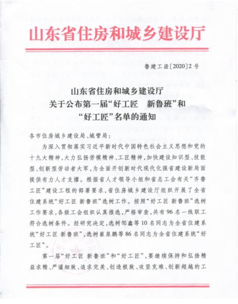 為深入貫徹落實(shí)中央加強(qiáng)和改進(jìn)新時(shí)期產(chǎn)業(yè)工人隊(duì)伍建設(shè)改革要求,大力弘揚(yáng)勞模精神、工匠精神,加快建設(shè)知識(shí)型、技能型、創(chuàng)新型勞動(dòng)者大軍,為全面開創(chuàng)新時(shí)代現(xiàn)代化強(qiáng)省建設(shè)新局面提供有力人才支撐,根據(jù)省人才領(lǐng)導(dǎo)小組和省總工會(huì)“齊魯工匠”建設(shè)工程的工作部署及省住房城鄉(xiāng)建設(shè)廳實(shí)施方案,中啟膠建集團(tuán)積極組織參加全省住建系統(tǒng)“好工匠 新魯班”選樹工作。