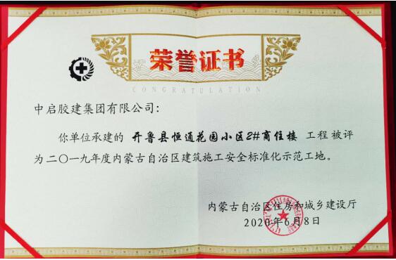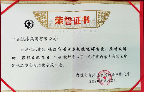 7月3日,內(nèi)蒙古通遼市住房和城鄉(xiāng)建設(shè)局傳來喜訊,建筑二公司施工的通遼市乳酸鏈球菌素、蔗糖發(fā)酵物、聚賴氨酸項目”和“開魯縣恒通花園小區(qū)2#商住樓獲得2019年度內(nèi)蒙古自治區(qū)建筑施工“安全標(biāo)準(zhǔn)化示范工地”榮譽稱號。
