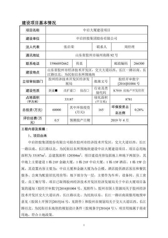 中啟大廈建設(shè)項目環(huán)境影響報告表