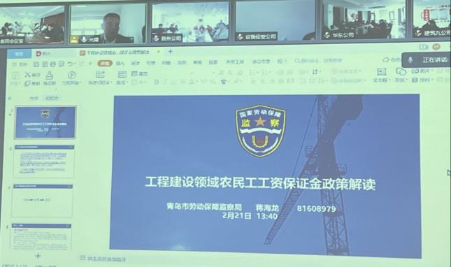 2月21日,公司邀請青島市勞動(dòng)監(jiān)察保障局蔣海龍科長對(duì)工程建設(shè)領(lǐng)域如何繳納農(nóng)民工工資保證金進(jìn)行指導(dǎo)培訓(xùn)。培訓(xùn)方式通過線上騰訊會(huì)議進(jìn)行,培訓(xùn)人數(shù)達(dá)200多人。會(huì)議由集團(tuán)公司安全生產(chǎn)管理部統(tǒng)一組織,在中啟大廈20樓會(huì)議室及各分公司分別建立分會(huì)場,公司安全生產(chǎn)管理部全體人員、計(jì)財(cái)管理部相關(guān)人員,各分公司主管經(jīng)理、勞務(wù)主管、財(cái)務(wù)相關(guān)人員及項(xiàng)目經(jīng)理、項(xiàng)目會(huì)計(jì)、勞資管理員參加了此次培訓(xùn)。