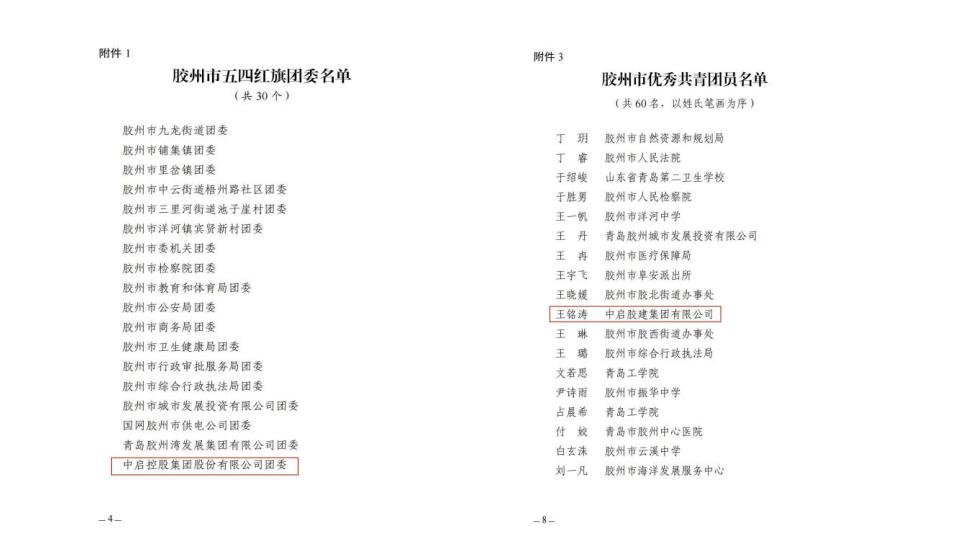 近日,膠州團市委在市會議中心四樓多功能廳舉行“學習二十大、永遠跟黨走、奮進新征程”膠州市紀念五四運動104周年主題團日活動,市委副書記劉濤出席并發(fā)表致辭,團市委書記劉毅帶領(lǐng)全體團員團干部重溫入團誓詞,會上對全市“五四典型”進行通報表揚。中啟控股集團股份有限公司團委榮獲2022年度“膠州市五四紅旗團委”稱號,中啟膠建集團膠州公司團員青年職工王銘濤榮獲“膠州市優(yōu)秀共青團員”稱號。