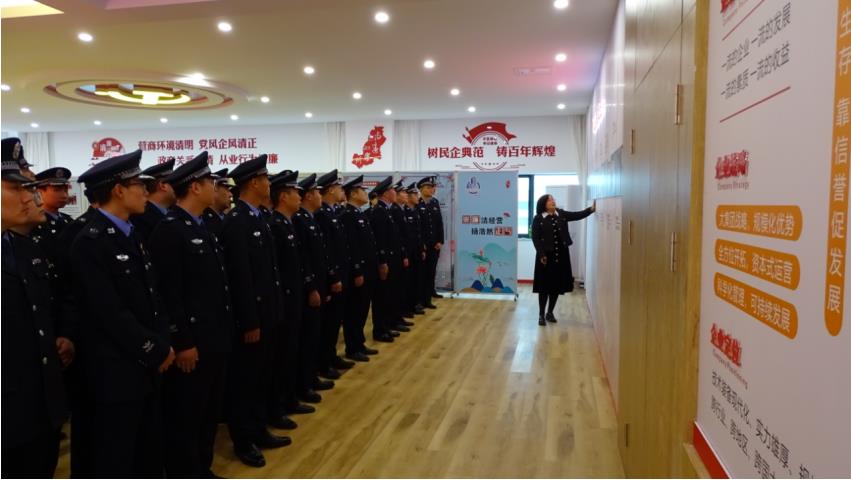 膠州市公安局青年民警輔警代表一行首先來到集團(tuán)中啟文化展廳,在集團(tuán)工會主席劉博的引領(lǐng)講解下,他們詳細(xì)了解了集團(tuán)黨建、清廉民企、勞模工匠、職工之家等企業(yè)文化,并參觀了企業(yè)的榮譽(yù)室。