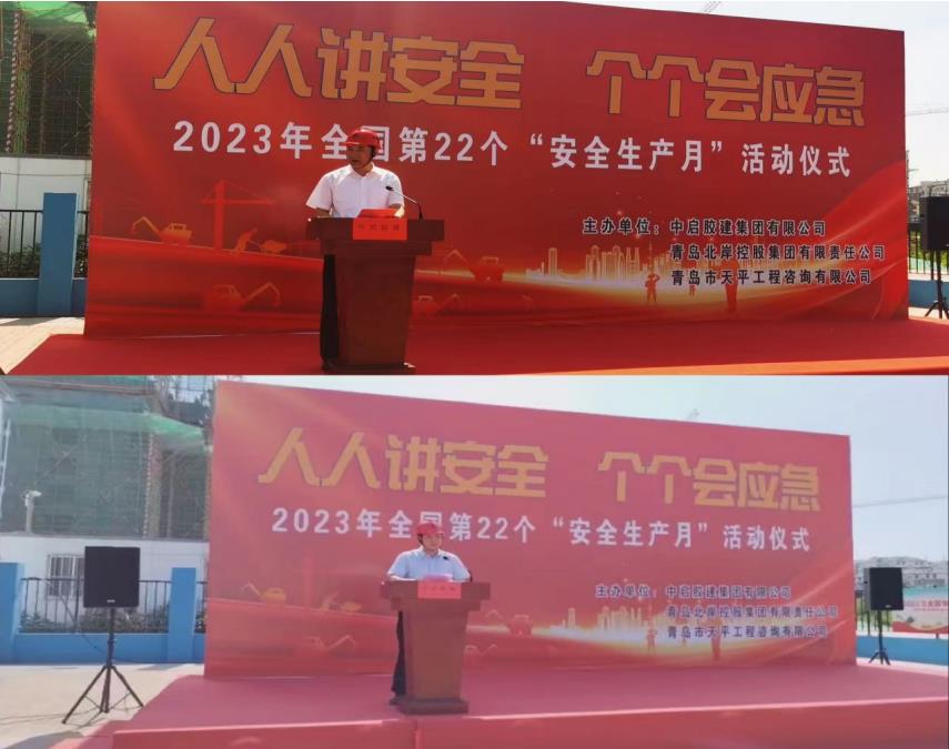 為全面落實(shí)青島市住建局《關(guān)于舉辦 2023 年青島市住建系統(tǒng)“安全生產(chǎn)月”啟動(dòng)活動(dòng)》的通知要求,6月14日上午在南萬(wàn)社區(qū)改造工程項(xiàng)目舉辦“人人講安全、個(gè)個(gè)會(huì)應(yīng)急”為主題的全國(guó)第22個(gè)“安全生產(chǎn)月”活動(dòng),本次活動(dòng)由青島公司安全總監(jiān)孫曉波主持,城陽(yáng)區(qū)建筑工程管理服務(wù)中心紀(jì)勝尚科長(zhǎng)、棘洪灘街道建管辦杜濤濤主任、集團(tuán)副總經(jīng)理劉堯、工會(huì)主席劉博以及建設(shè)單位、監(jiān)理單位等領(lǐng)導(dǎo)出席了本次活動(dòng)。