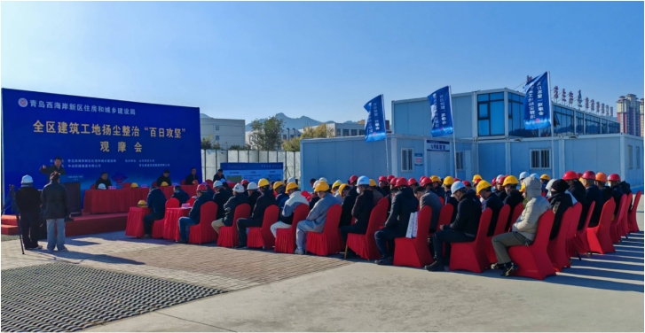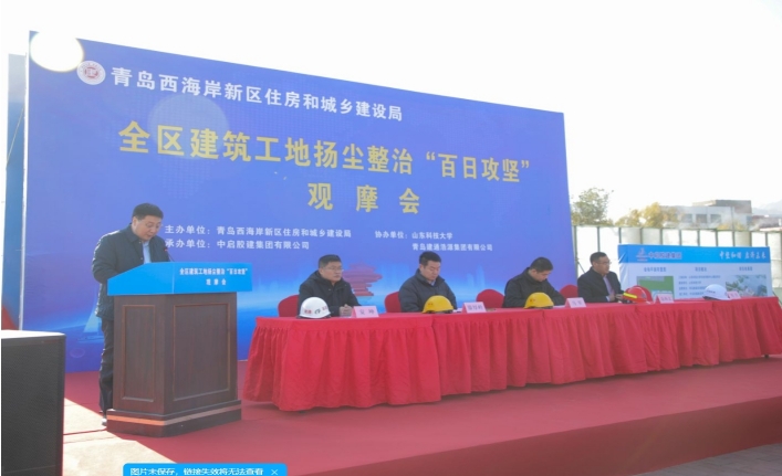為貫徹落實省、市關(guān)于大氣污染治理工作部署要求,進(jìn)一步提升建筑施工揚塵治理水平,12月6日,青島西海岸新區(qū)建筑工地?fù)P塵整治“百日攻堅”觀摩會在公司承建的山東科技大學(xué)科技創(chuàng)新中心項目現(xiàn)場舉行。青島西海岸新區(qū)住房和城鄉(xiāng)建設(shè)局建管中心副主任馬軍,中啟膠建集團副總經(jīng)理劉堯、建筑九公司副經(jīng)理張志昌以及青島西海岸新區(qū)各建筑項目的施工、監(jiān)理單位代表總計200余人參加活動。