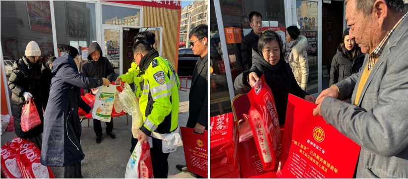 同時,活動現(xiàn)場開展新就業(yè)形態(tài)勞動者“情系職工·冬送溫暖”行動:贈送每名新就業(yè)形態(tài)勞動者及戶外工作者慰問物資1份并送福到家,現(xiàn)場共計送出150份物資。