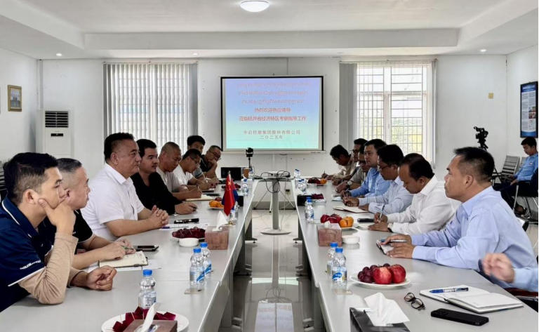 11月11日上午,柬埔寨東北地區(qū)投資促進(jìn)工作組代表SIM VIREAK閣下,以及柬埔寨發(fā)展理事會(huì)(CDC)、商務(wù)部、海關(guān)、勞工局等多個(gè)相關(guān)部門代表,蒞臨桔井省經(jīng)濟(jì)特區(qū)進(jìn)行考察訪問(wèn)。中啟海外公司總經(jīng)理張祿澤熱情接待了考察團(tuán)一行,并同各部門代表進(jìn)行了座談交流,雙星(柬埔寨)輪胎有限公司、福麥斯(柬埔寨)輪胎有限公司、華中能源科技有限公司等特區(qū)入駐企業(yè)代表共同出席了會(huì)議。