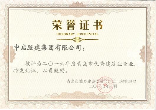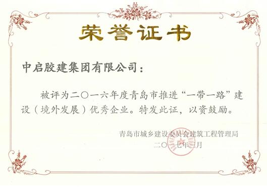 近日,青島市建委建管局表彰2016年度建筑行業(yè)優(yōu)秀企業(yè)。中啟膠建集團榮獲青島優(yōu)秀建筑業(yè)企業(yè)、青島市推進(jìn)"一帶一路"建設(shè)(境外發(fā)展)優(yōu)秀企業(yè)兩項殊榮。這是企業(yè)綜合實力提升和參與國家一帶一路建設(shè)取得顯著業(yè)績的縮影。中啟膠建集團將以此為契機,再接再厲,加強企業(yè)市場主體信用考核,提升企業(yè)綜合競爭力,全力參與國家一帶一路建設(shè),不斷創(chuàng)造更加豐碩的成果。